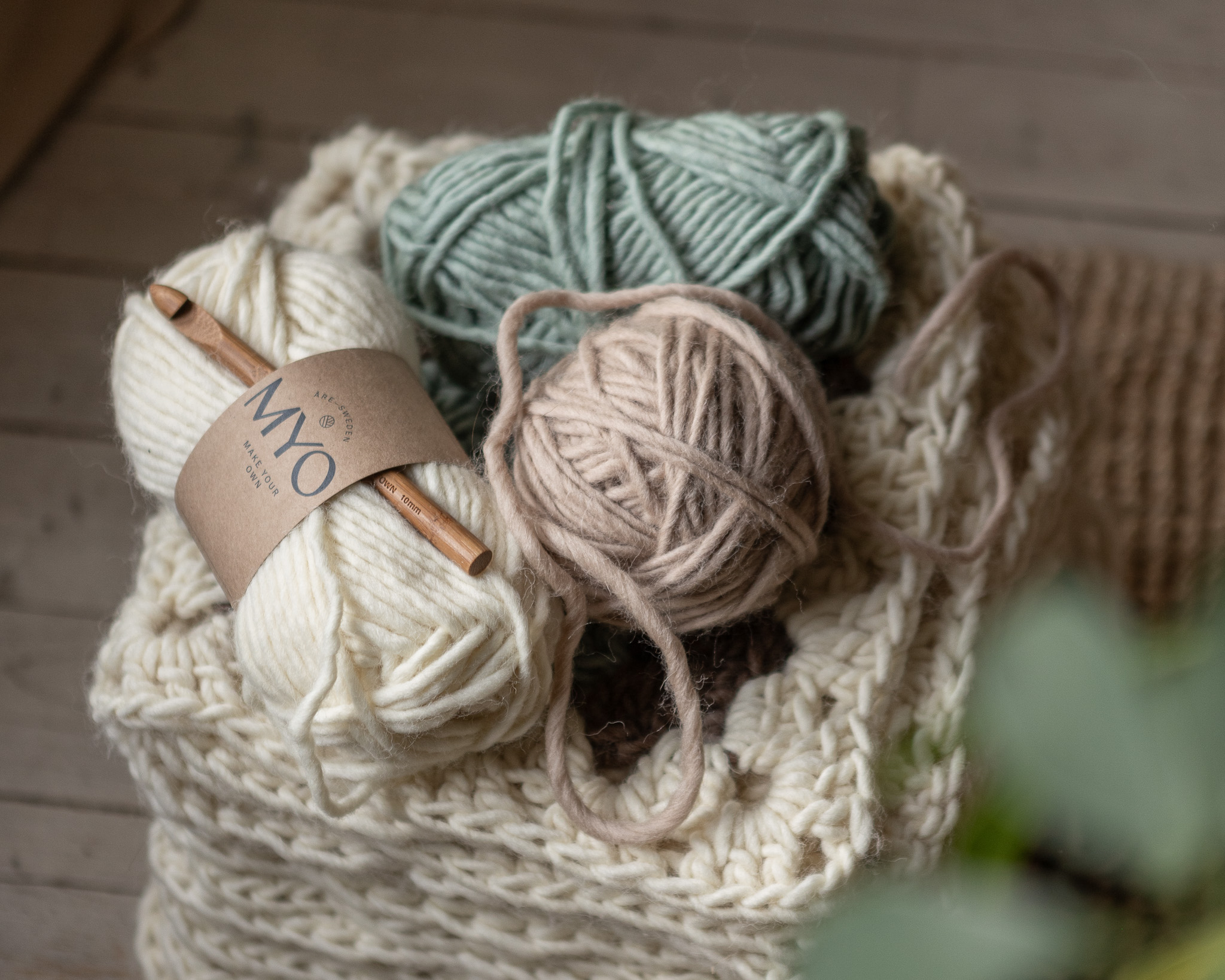 Under januari 2026 får du som medlem 4 för 3 på MYO Chunky wool! Erbjudandet gäller färgerna Cacao, Grey, Warm grey och Nature white.