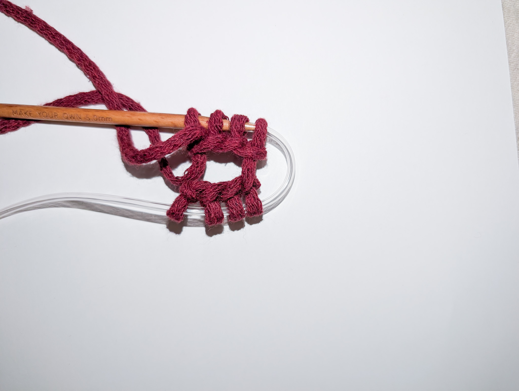 Repeat this process until you have an I-cord measuring 150 cm. Bind off the 4 stitches.