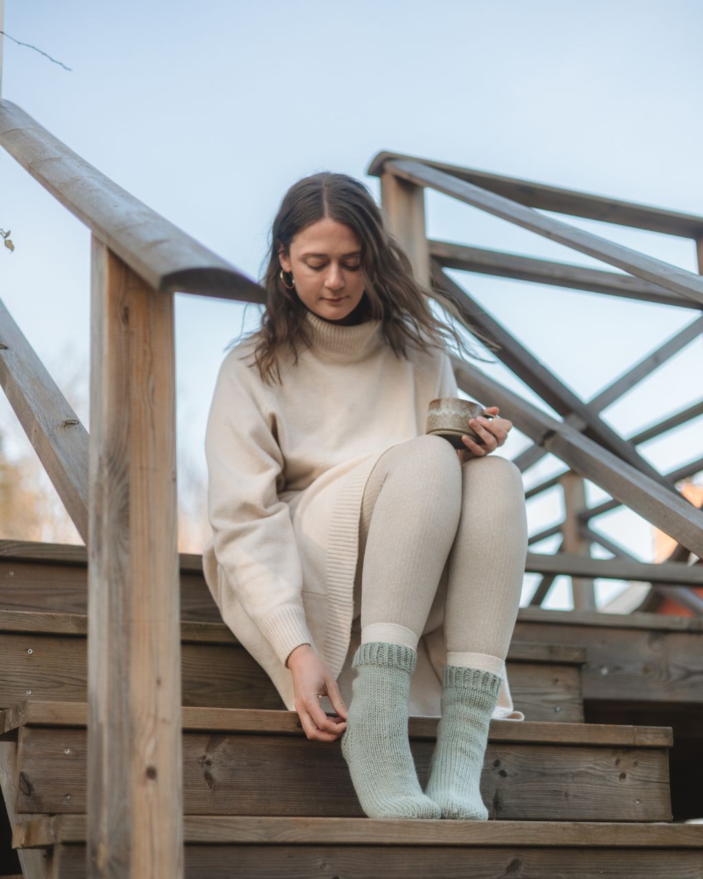 Yarn requirements: For a pair of socks approximately the same size as the example (EU 39, foot circumference about 30 cm, foot length about 26 cm), you’ll need about 120 g of yarn (about 60 g per sock). Expect a variation of approximately ±12 g for each size up or down. This is an approximate amount and may vary depending on the measurements of the foot, the length of the cuff, and your gauge.