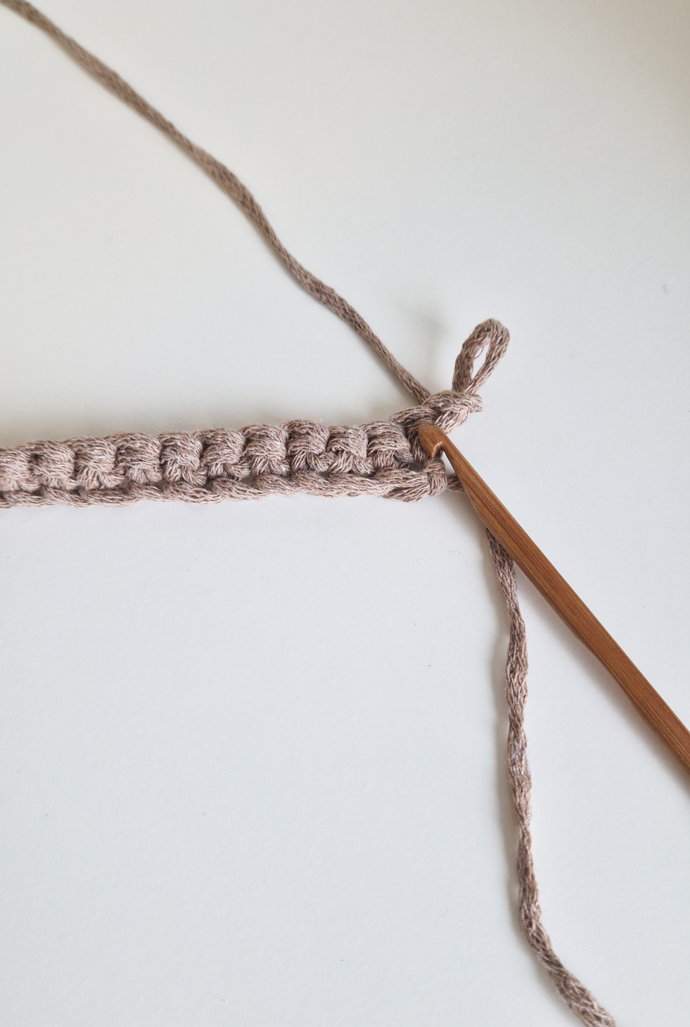 Row 2: Start crocheting into the second chain from your hook. You’ll now crochet into the back bumps of the chain. If you find that difficult, you can crochet into the regular top loop instead — but working into the back bumps gives a neater finish.