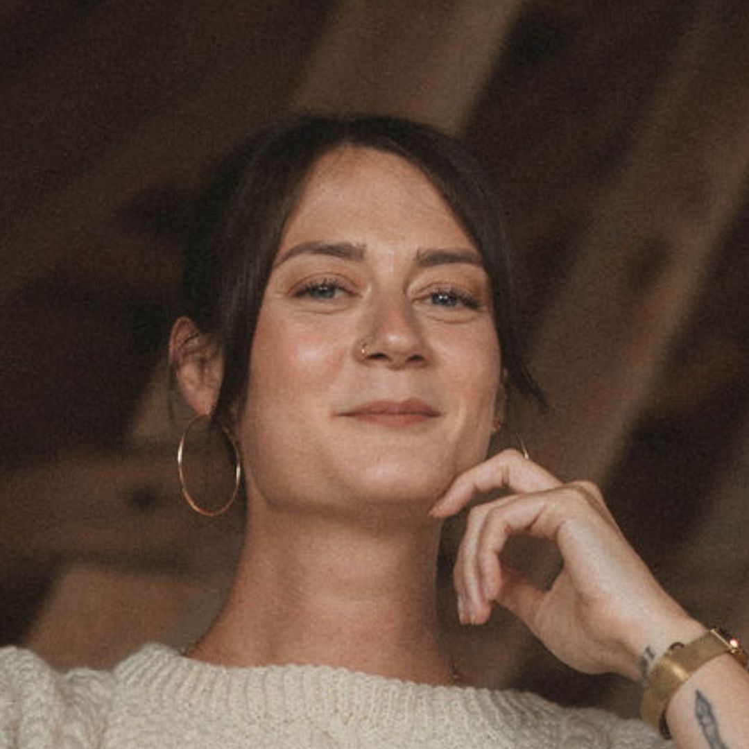 5. Håll fast båda garnändarna i handflatan med ringfinger och lillfinger. Nu bildar garnet en “V-form” mellan tumme och pekfinger.