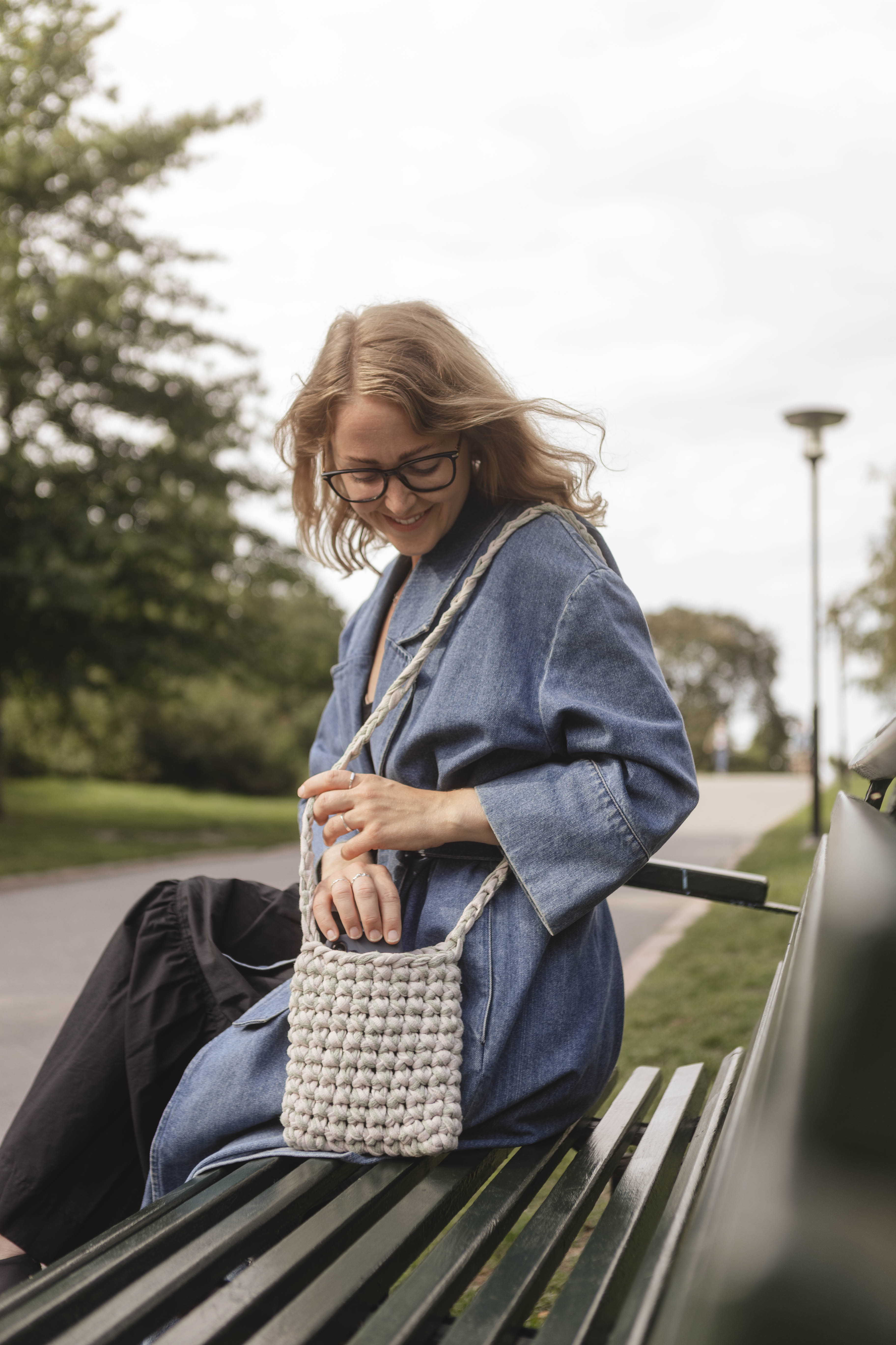 Den uppdaterade versionen av förra sommarens favorit, Sia 2, virkas med dubbla garn!. Den är både snygg och väldigt enkel att göra. Ta med väskan på stan eller vart du än behöver ha med dig småsaker, såsom telefon och plånbok. Du kan virka väskan i valfria garnsorter varav ett gärna får vara lite tjockare - i denna väska har vi använt kombinationen EKO Ribbon + EKO Nano. Instruktionsvideon är samma som vår andra väska Sia, den enda skillnaden är att man virkar denna med dubbla garn vilket är enkelt om du bara låter garnerna följa varandra genom hela projektet.