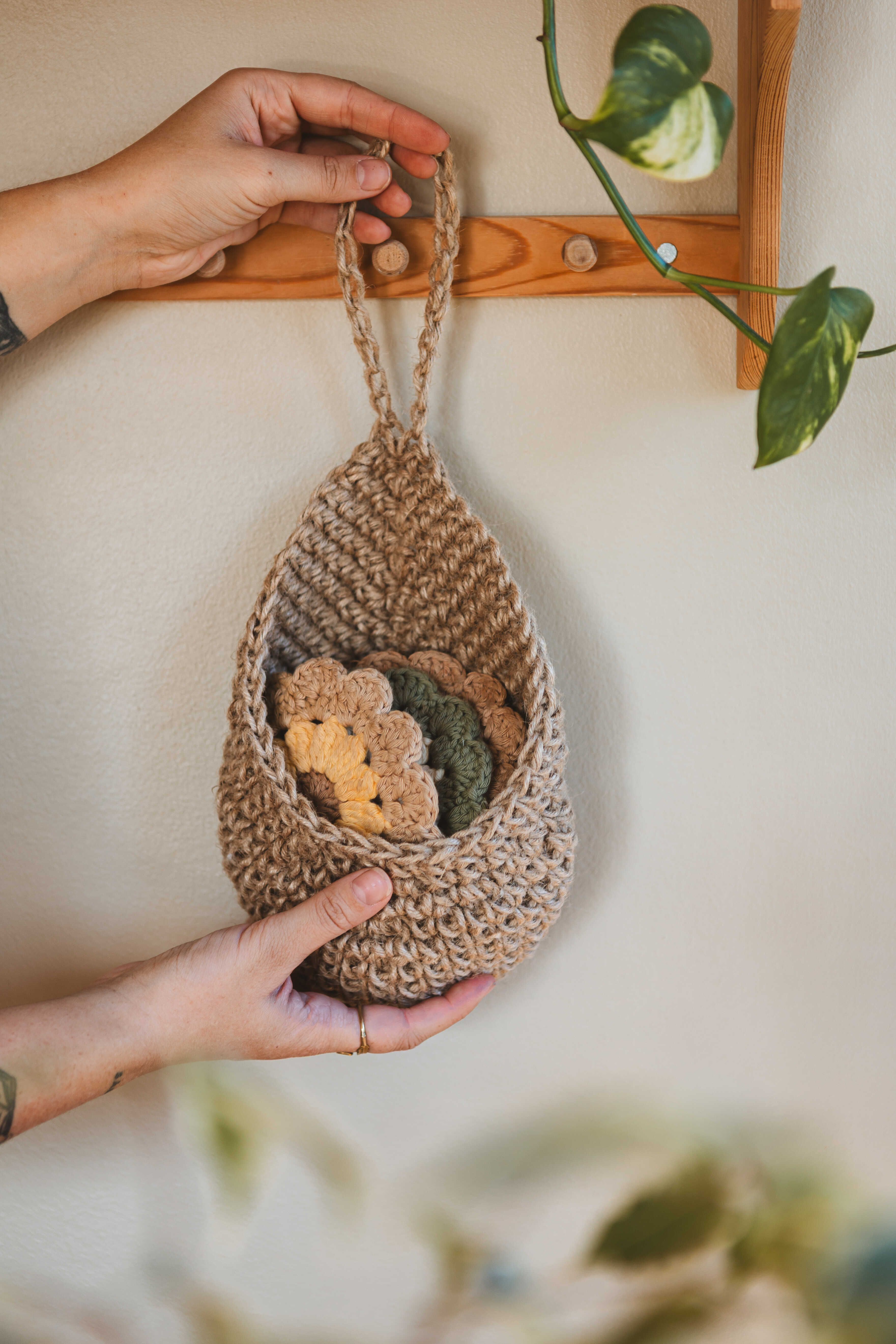Virka en vacker väggkorg med eller utan en träring!