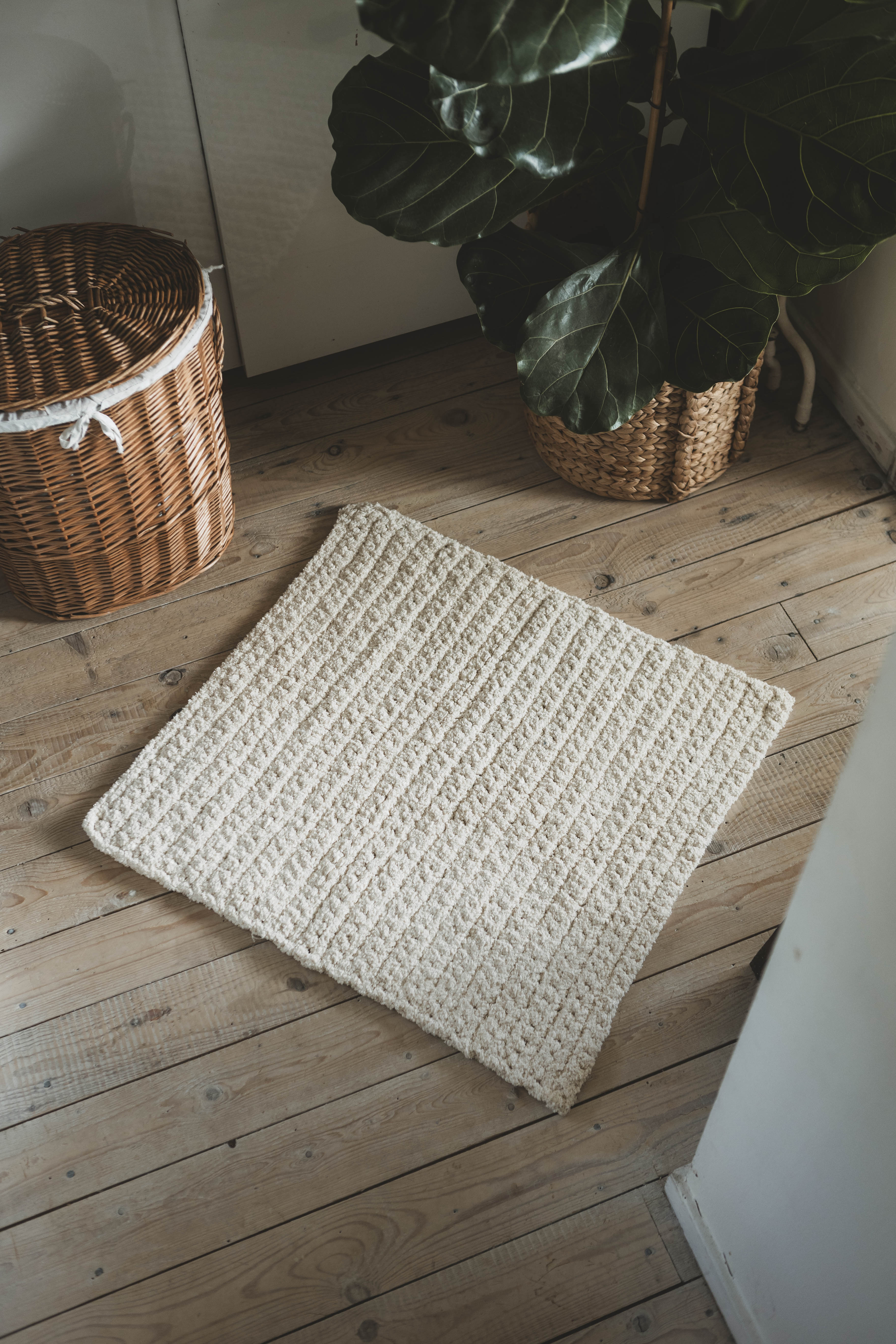 I den här instruktionen kommer vi virka en fyrkantig matta i EKO Froté Craft Yarn 1200 g och virknål 10-12 mm, du bestämmer själv hur du vill ha dimensionerna på mattan. Mattan är enkel att virka och blir fin i exempelvis ett badrum. Vill du virka en större matta, kanske i fler färger? Ett tips är då att virka flera kvadratiska delar för att sedan sätta ihop dom till en större matta.