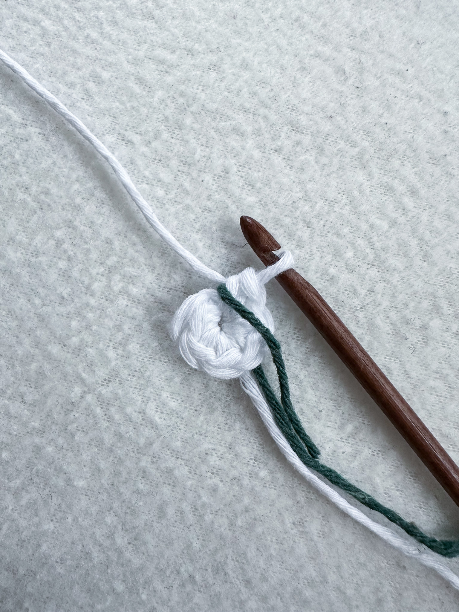 Varv 1: Virka 6 fasta maskor i en magisk ring. Om du är osäker på hur du virkar en magisk ring med fasta maskor, se nedan video (Magic Ring Single Crochet).