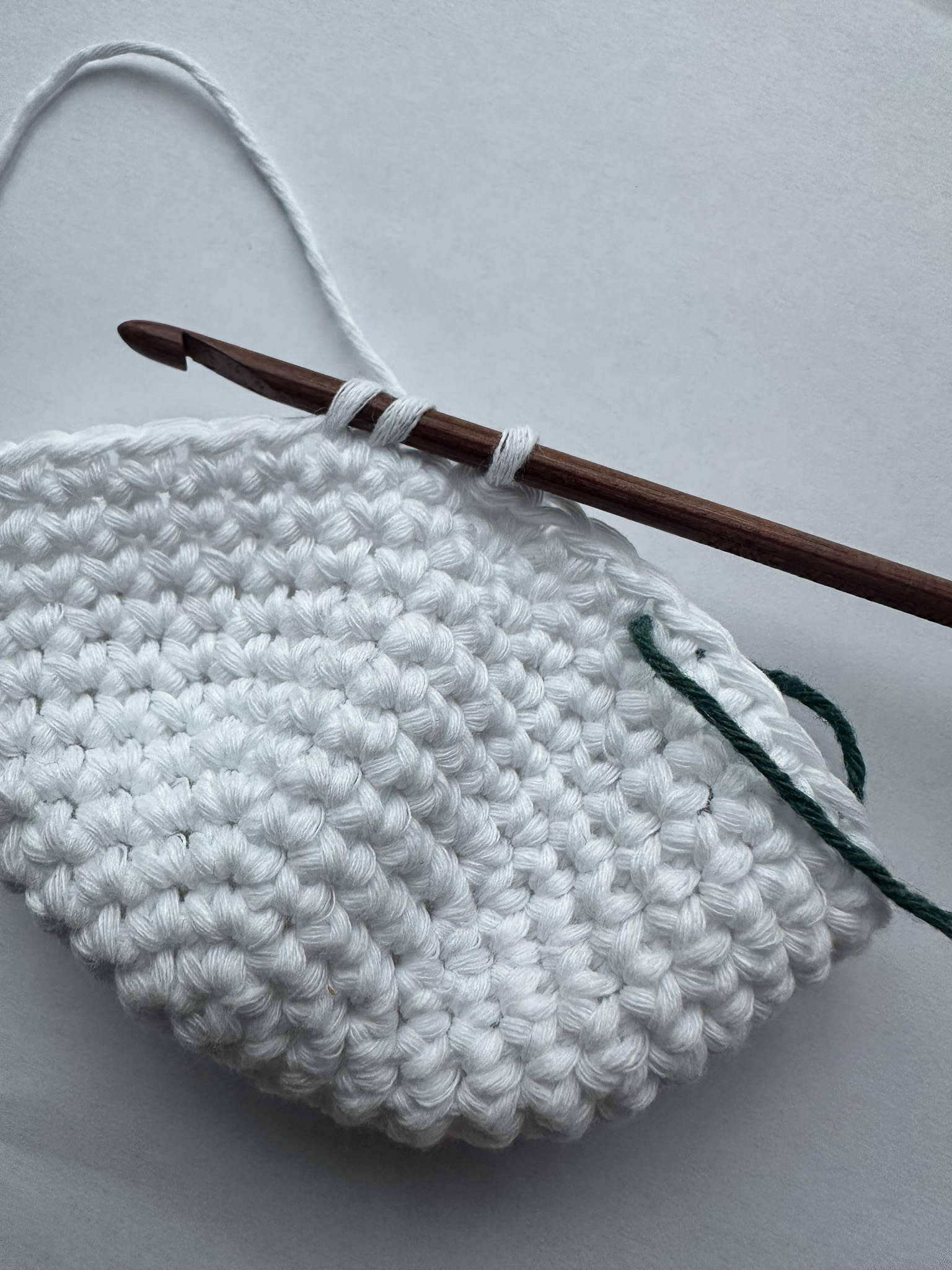 Om du är osäker på hur du virkar en halvstolpe, se nedan video (Half Double Crochet).