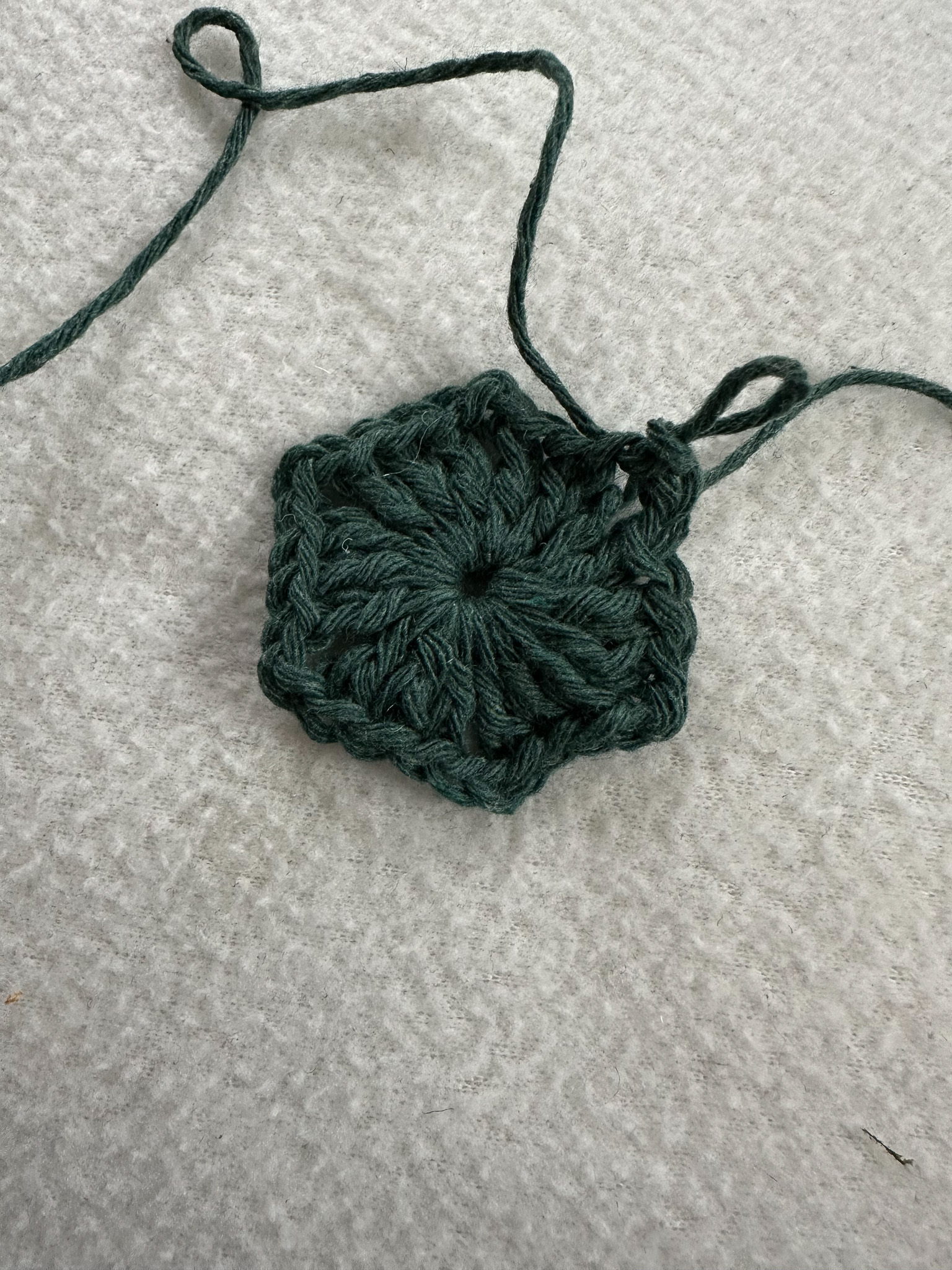 Varv 4: Virka två fasta maskor i de första två maskorna. Sedan virkar du två fasta maskor i den tredje maskan. Upprepa detta (ökning i var 3:e maska) varvet ut. Totalt har du 12 maskor på varvet.