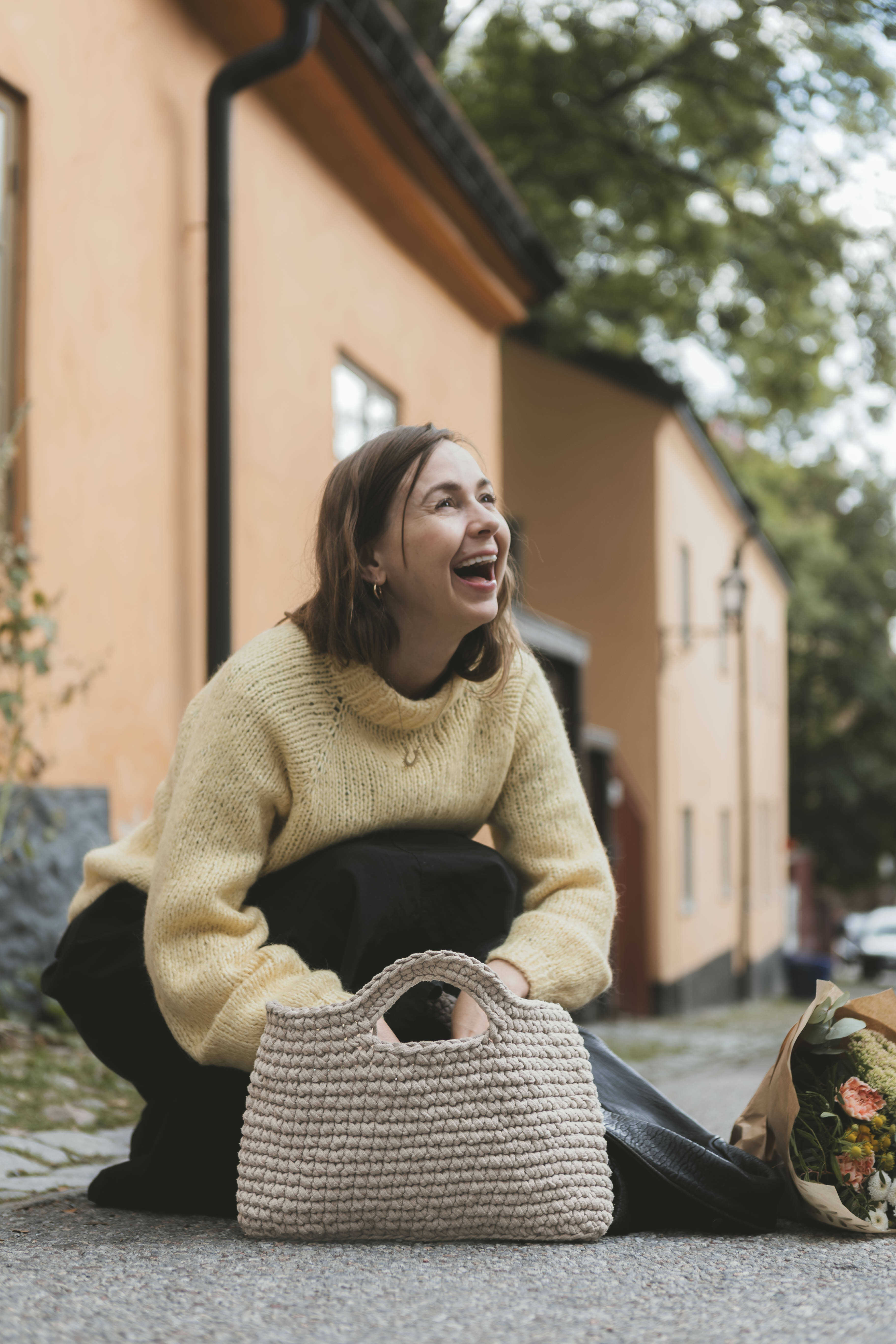 Med den här instruktionen lär du dig att virka väskan "Emelie" med garnet EKO Medium 1000 g. Instruktionen hjälper dig att förstå hur du ska mäta botten och sidan på väskan, så att du under processen själv kan bestämma hur stor väska du vill göra. Du kan välja att virka en större väska för att få plats med din laptop, se exempel på storlekar i instruktionen under steg 2.